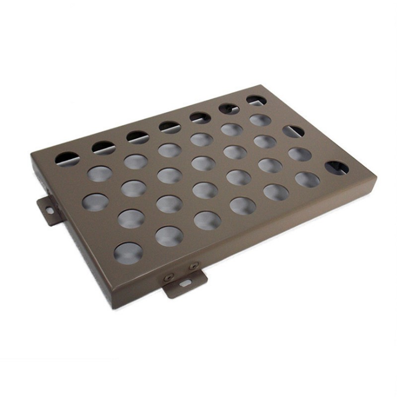 氟碳沖孔鋁單板是采用代號1200H26、1070H26、5005H26等鋁板幕墻的專用單層鋁板作為原材料。在通過數(shù)控設(shè)備的精雕細(xì)琢,裁剪沖壓,再通過數(shù)控折彎等工藝技術(shù)成型。鋁板的表層在采用氟碳油漆的噴涂或是粉末噴涂等工藝來做表面的處理形成幕墻的裝飾材料。