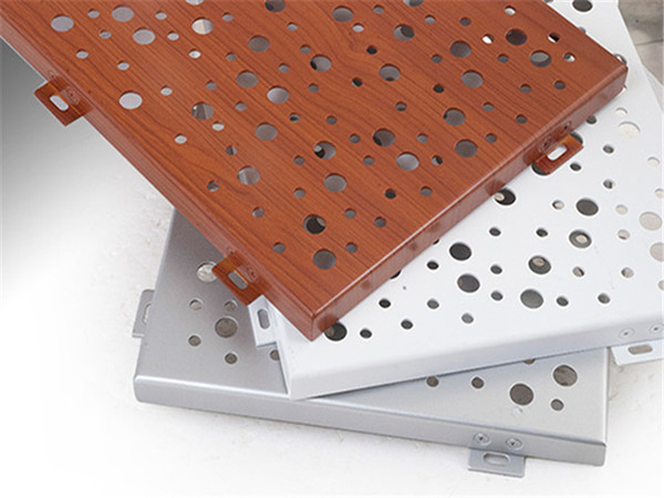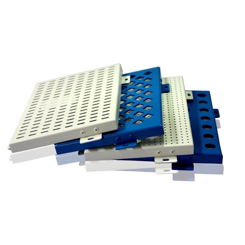 時尚與個性并存,富有藝術特色。配以不同顏色和形狀各異的沖孔,則會則會營造出獨特的氛圍,更會提升建筑的層次感和現代感。沖孔鋁單板一般采用優質1100、3003、5005單層鋁合金板為基材。表面涂層分為氟碳噴涂,粉末噴涂,聚酯漆噴涂。鋁板表面涂層性質嚴格按客戶要求,顏色可由公司負責提供標準色卡供客戶選擇。沖孔鋁單板產品厚度主流的有1.5mm、2.0mm、2.5mm、3.0mm、4.0mm等各種規格,成型鋁單板更大尺寸可達1500x4000mm。單層鋁合金幕墻板的結構主要由面板、加強筋、掛耳等部件組成。加工好的氟碳涂層板材01構造 由上至下依次為:保護膜層、氟碳樹脂PVDF系統(三涂時由上至下分別為光漆、面漆、底漆)、預處理層、鋁板層、預處理層、背覆涂層(雙面噴涂)。根據客戶要求,鋁板背面可配合添加礦棉、巖棉以達到增強保溫、隔熱和隔音等效果。