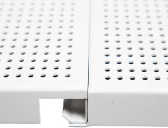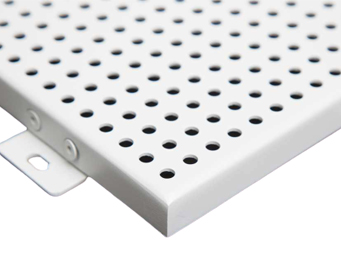 與常規鋁單板相比,沖孔鋁單板更大的特征就是表面形狀各異的沖孔(包括圓孔、方孔、五角星、六邊形孔等),裝飾效果突出,也能夠在一定程度上起到降低噪音的作用。集裝飾性與實用性于一體,沖孔鋁單板在工程裝飾中使用的越來越多。