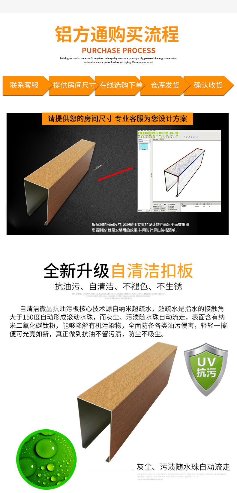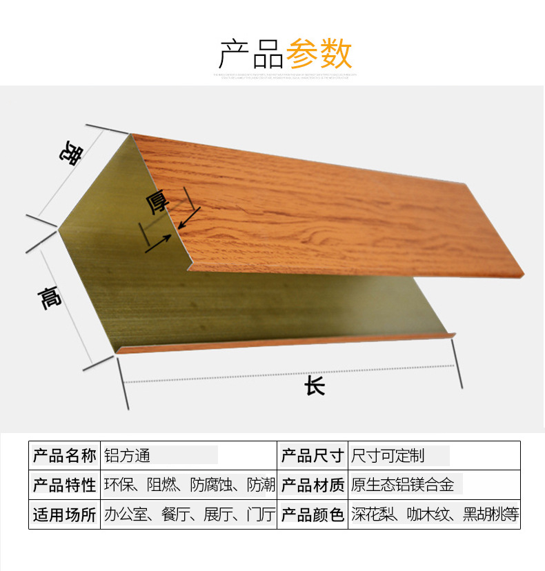 鋁方通天花厚度由0.8mm --1.5 mm表面處理可以用粉末材料,木紋,也可以烤漆。