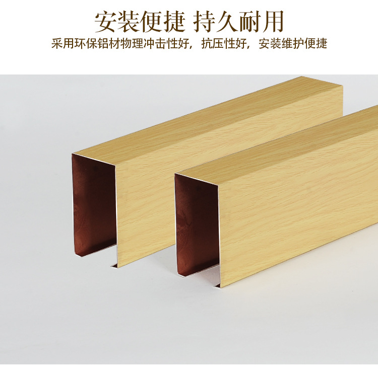 U型木紋鋁方通天花吊頂現(xiàn)在是一種較熱門的吊頂產(chǎn)品,適用于各種場合裝飾使用,木紋鋁通,是一種尺寸靈活,長度靈活,安裝靈活的吊頂產(chǎn)品,可以根據(jù)個人喜好或者工程預(yù)算選擇合適的鋁通尺寸,長度,顏色等,鋁方通龍骨殼可根據(jù)客戶安裝間距定制,隨意安裝。