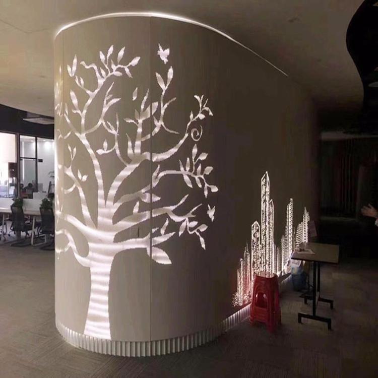 因?yàn)榈窕òX單板加工性能優(yōu)良,易切割、焊接、彎曲、可制作造型和便于工地安裝,這一點(diǎn)是其他裝飾材料無(wú)法比擬的。欣鋁圖包柱鋁單板有較強(qiáng)的隔音、減震性能,并可在鋁單板上任意沖孔,可在背面加吸音棉、巖棉等吸音隔熱材料,阻燃性好,發(fā)生火災(zāi)時(shí)無(wú)濃煙產(chǎn)生,常用于商業(yè)建筑。