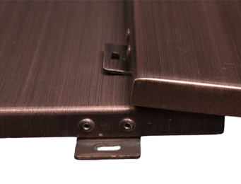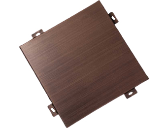 鍍銅拉絲鋁單板采用優質高強度合金鋁板,用“三涂二烤”工藝在鋁板上依次噴涂底漆、面漆、顏色漆及透明清漆,并在烘干固化后的仿銅氟碳漆表面進行拉絲工藝處理,氟碳漆仿銅產品圖案具有銅的實物感、立體感,效果逼真,紋理清晰,圖紋牢固耐磨。減少采用銅板裝飾的高額成本,節約資源,提高經濟效益。