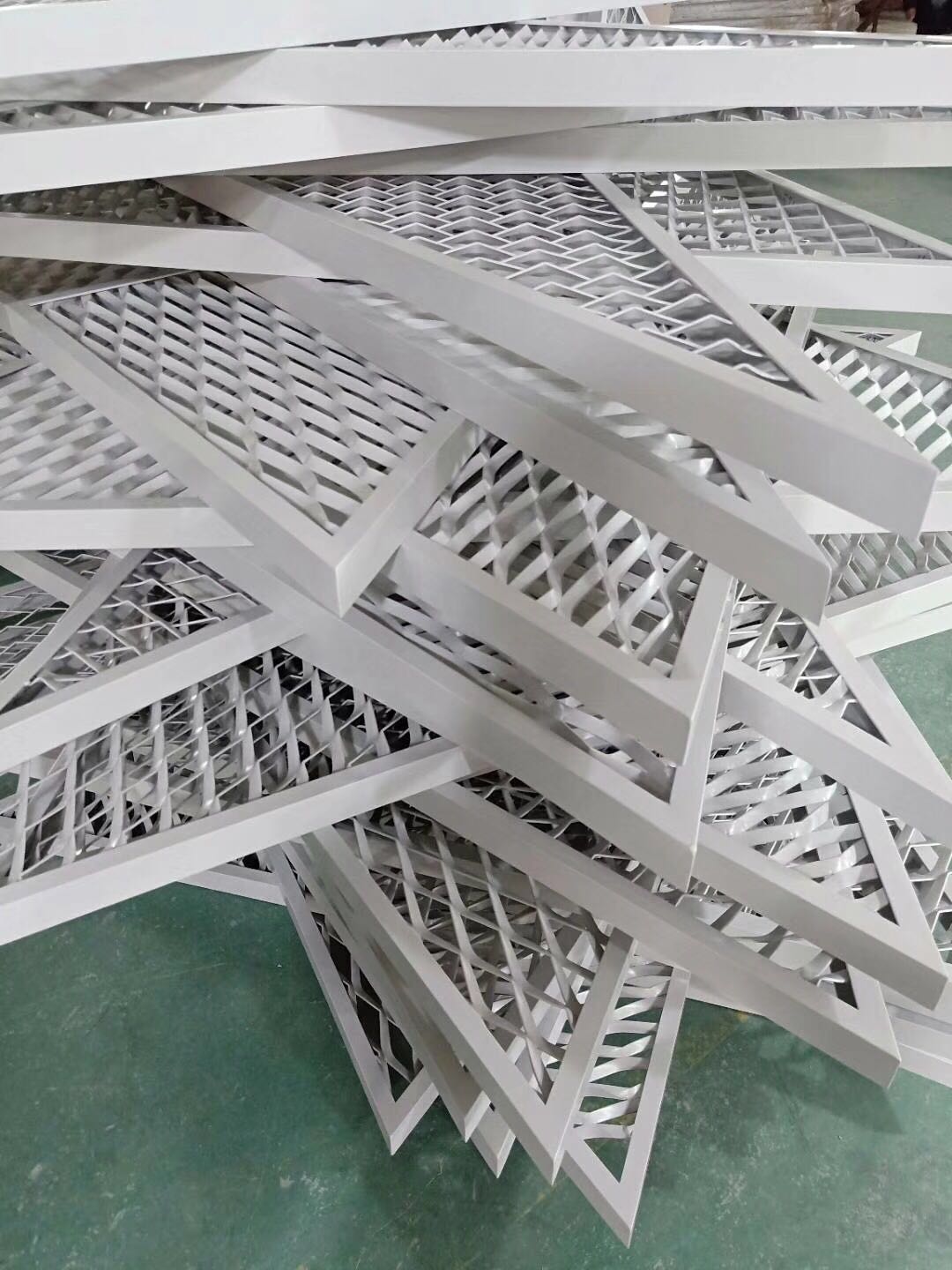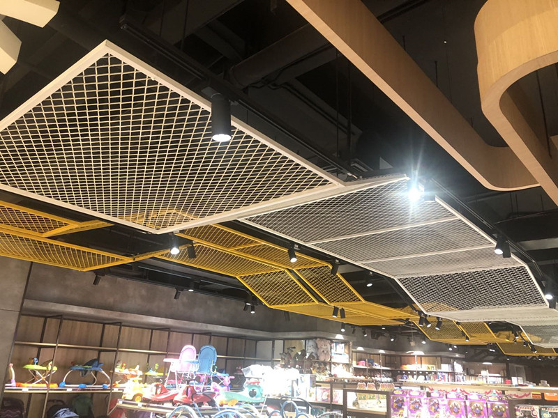 鋁網板又叫拉伸網,鋁網板在樣式、材質和顏色方面有廣泛的選擇,可以確保每個項目擁有獨特的外觀。鋁網板是通過特殊的制造工藝在金屬薄片表面同時進行切割和拉伸,制作出網孔,其網身更加輕便而且承載力強。最常見的鋁網板是菱形孔的,其他孔型還有六角型、圓孔、三角型、魚鱗孔等。通過網孔形狀、網孔方向以及照明和顏色的變化,可以將吊頂表現得更加通透和富有動感。不同的網孔類型和材質,使吊頂設計更加富有個性、更具有時尚氣息。