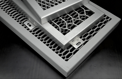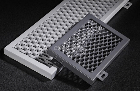 拉網鋁單板【又稱鋁網板、拉伸網、沖剪網】,采用優質的高鋁合金板材為基材,再經過數控折彎等技術沖剪、拉伸成型,表面噴涂裝飾性涂料的一種有菱形孔眼的新型拉網材料。