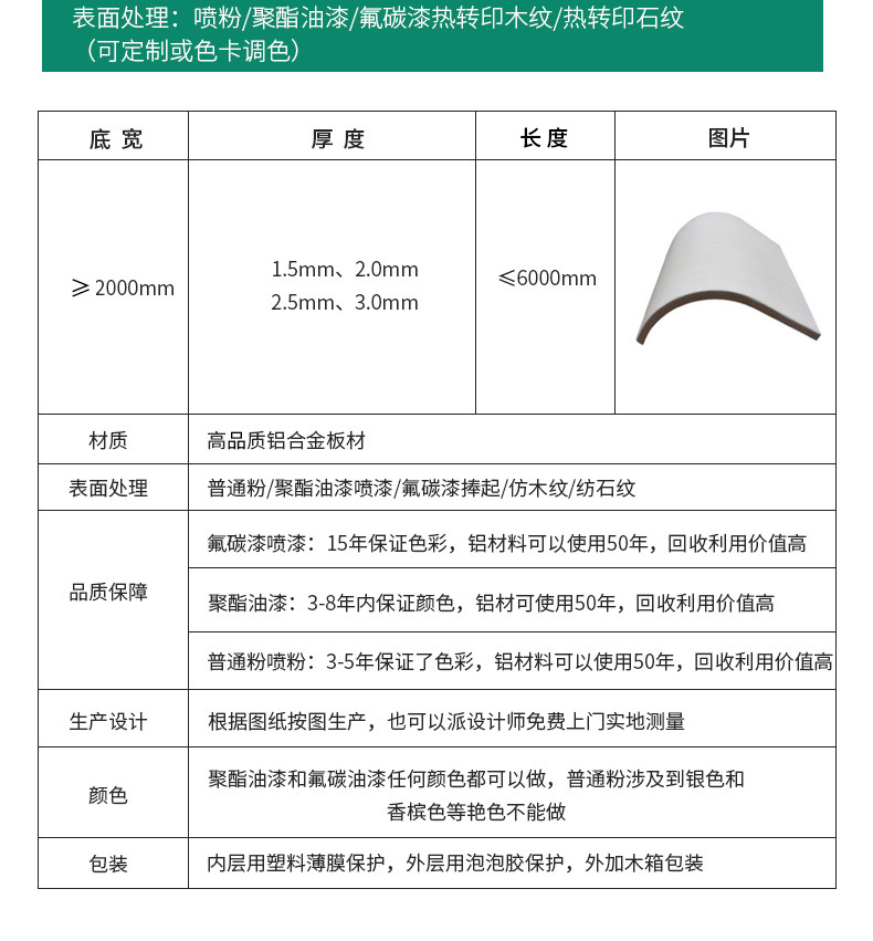 幕墻氟碳鋁單板規(guī)格選擇標(biāo)準(zhǔn):氟碳鋁單板可以應(yīng)用于室內(nèi)外墻面、吊頂天花燈的使用,因此,需要清楚氟碳鋁單板是應(yīng)用于室外還是室內(nèi)和具體的安裝設(shè)計(jì)位置,按照客戶的需求制定鋁單板規(guī)格。氟碳鋁單板一般選擇的長度和寬度是600*600,600*1200等規(guī)格,室外鋁單板厚度一般選擇2.5mm、3mm;室外的低層和裙樓部分一般選擇厚度2.0mm,室內(nèi)墻面或者是吊頂一般選擇厚度薄是1.0mm 或1.5mm。