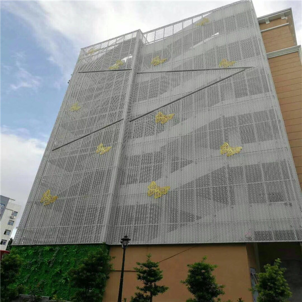 鋁網板又叫拉伸網,鋁網板在樣式、材質和顏色方面有廣泛的選擇,可以確保每個項目擁有獨特的外觀。鋁網板是通過特殊的制造工藝在金屬薄片表面同時進行切割和拉伸,制作出網孔,其網身更加輕便而且承載力強。最常見的鋁網板是菱形孔的,其他孔型還有六角型、圓孔、三角型、魚鱗孔等。通過網孔形狀、網孔方向以及照明和顏色的變化,表現得更加通透和富有動感。